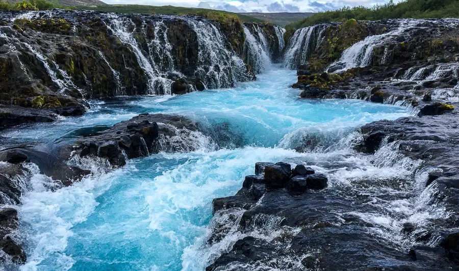 Bruarfoss es de las cosas más bonitas que ver en el círculo dorado, su agua azul turquesa y su paisaje de alrededor te dejará sin palabras.