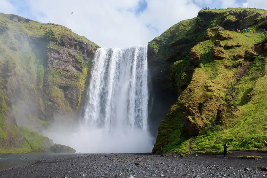 La próxima parada de nuestra ruta por Islandia será la cascada Skógafoss, que con una cortina de agua de 62 metros de altura, es posiblemente la más famosa y emblemática de Islandia.